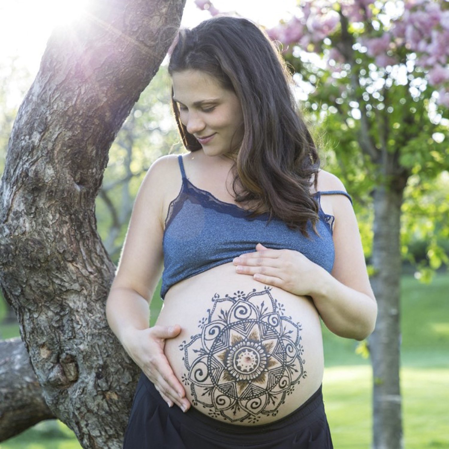 - komplex, személyre szabott pocak festés (henna/arcfesték)